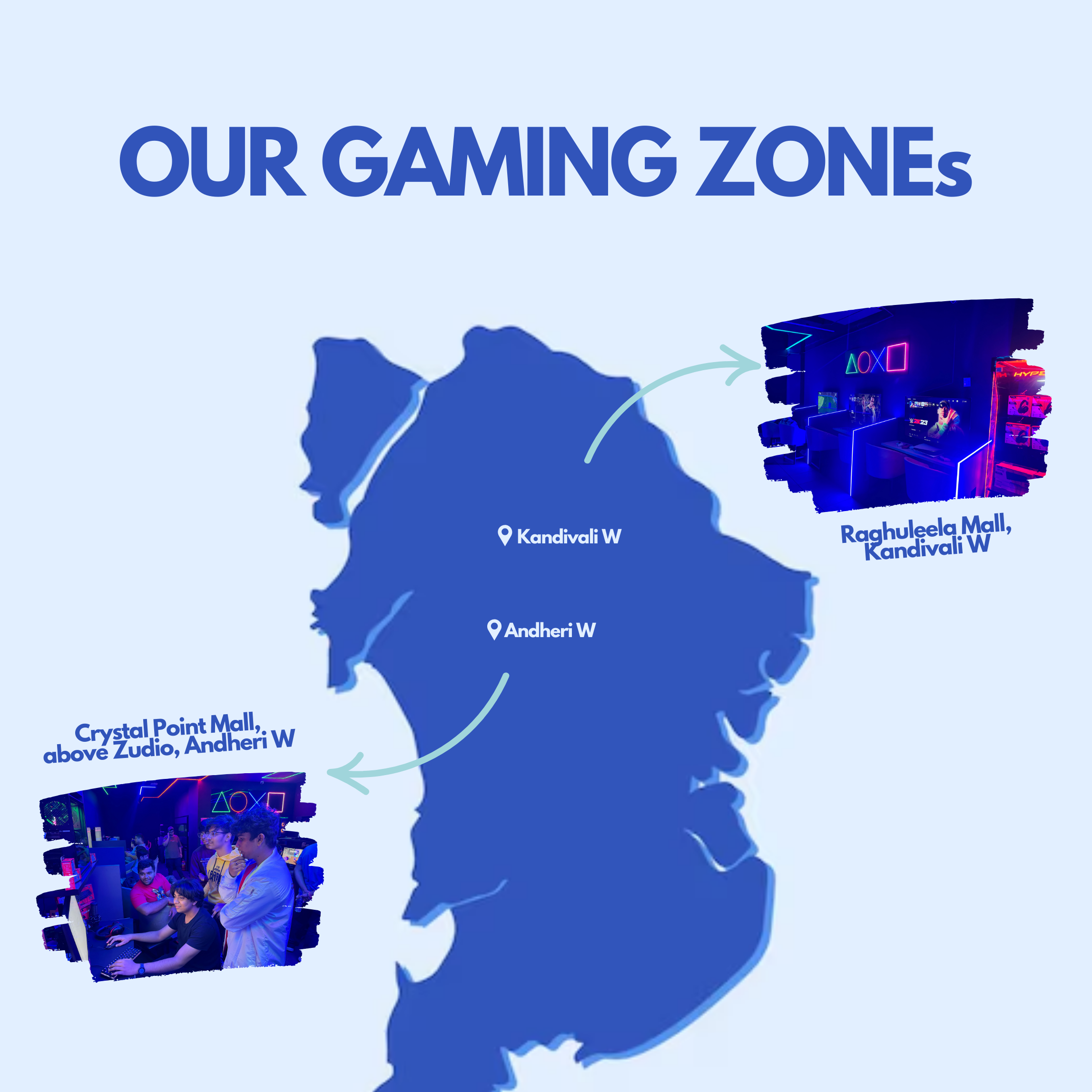 📍 Andheri & Kandivali, Mumbai – Easily accessible from all parts of the city. ⏰ Open Daily from 11 AM to 11 PM – Perfect for late-night gaming sessions. 📞 Call/WhatsApp to Book Your Spot!